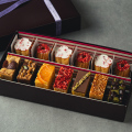 | 原材料 | バター(ニュージーランド産),砂糖,卵,白餡,小麦粉,チョコレート,レーズン,プルーン,クルミ,栗,アーモンド,ヘーゼルナッツ,ピスタチオ,転化糖,蜂蜜,乳製品,メープルシュガー, オレンジピール,オレンジシロップ漬け,柚子ピール,水飴,洋酒,抹茶,小豆,イチジク,大納言,練乳,米粉,苺,フランボワーズ,油脂加工食品,ココアバター,レモン果汁,植物油脂,脱脂粉乳,ビート,マルトデキストリン,,全粉乳,寒天,食塩, /加工でん粉,トレハロース,グリシン,酢酸Na,保存料(しらこたん白),膨張剤,乳化剤,(レシチン),カラメル色素,甘味料(スクラロース),銀箔,着色料(二酸化チタン,紅麹,クチナシ),酸味料,香料,(原材料の一部に乳成分,卵,小麦,オレンジ,大豆,アーモンド,クルミを含む) |